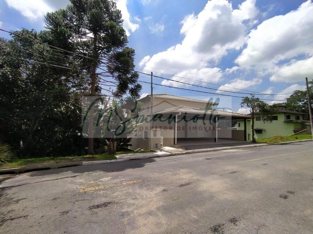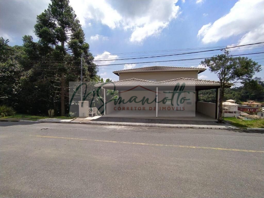 São 03 suítes grandes com armário, sala de jantar, sala de estar, despensa, escritório, lavanderia, lavabo, salão com churrasqueira, garagem coberta para 4 carros, vista para mata nativa.
