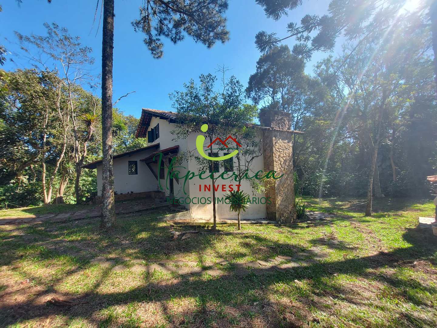 São 5 mil metros de terreno, possui uma casa estilo chalé, com 3 dormitórios (1 suíte), sala de estar com lareira, sala de jantar, sala de televisão com lareira, mezanino, cozinha, área de serviço, amplo quintal.