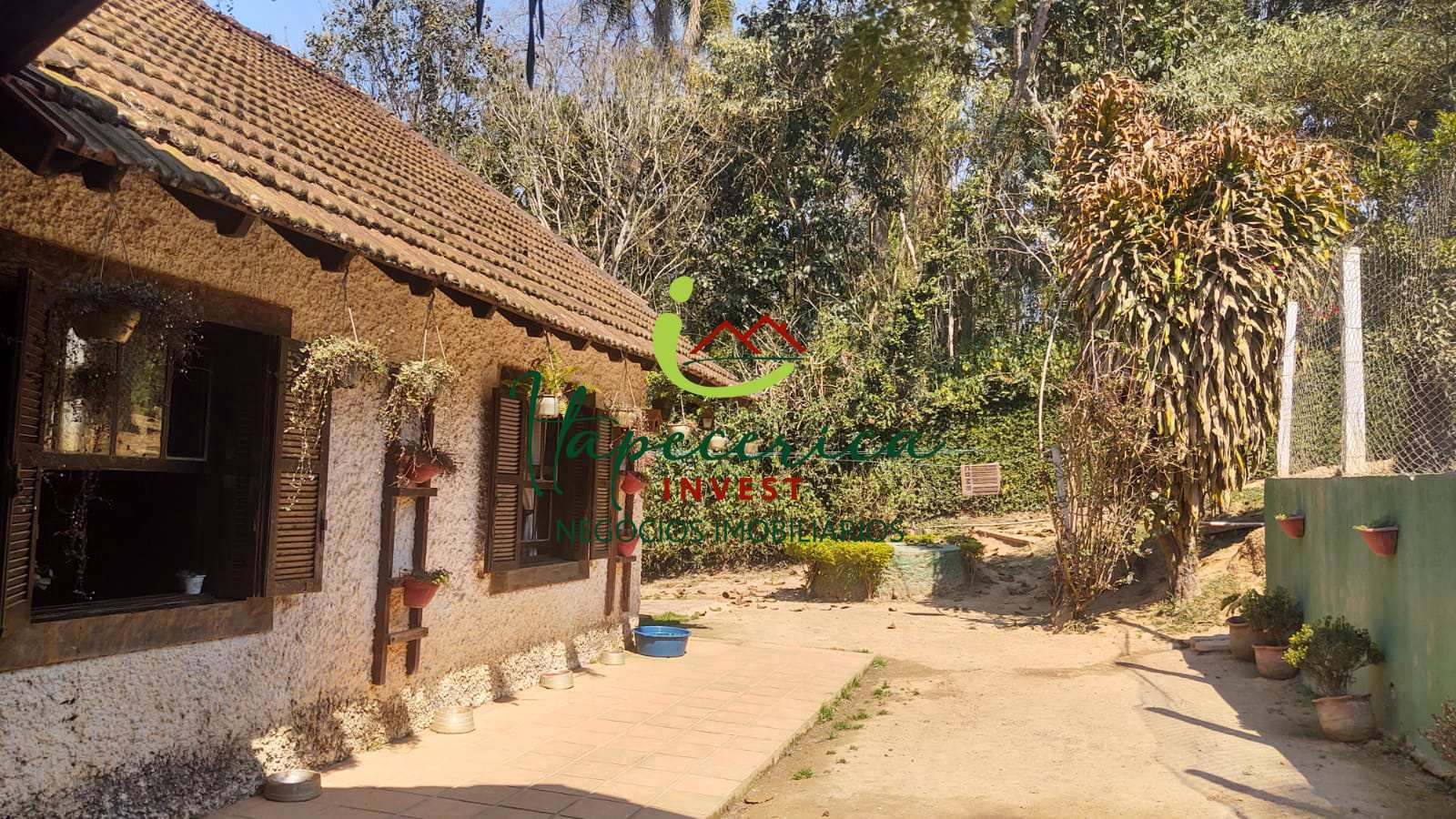 Chácara com 5000 metros de área, casa sede rústica, 3 dormitórios, 1 suíte, banheiro, mezanino com escritório, sala de estar com lareira, cozinha, lavanderia, dependência para empregada.