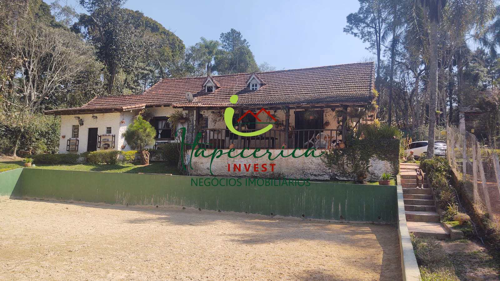 Área comum com 5 cocheiras, amplo jardim, bela vista, pista de areia para cavalo, garagem coberta para 2 autos, varanda.