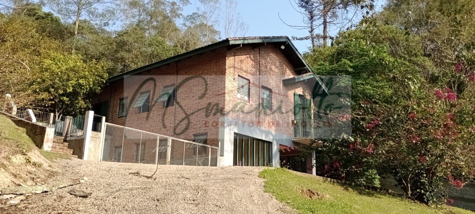 São 2.000,00 metros de terreno, em leve declive, uma parte com muro e outra telada, a casa tem 03 dormitórios sendo 02 suítes, sala, cozinha, lavanderia, edícula com churrasqueira e banheiro.